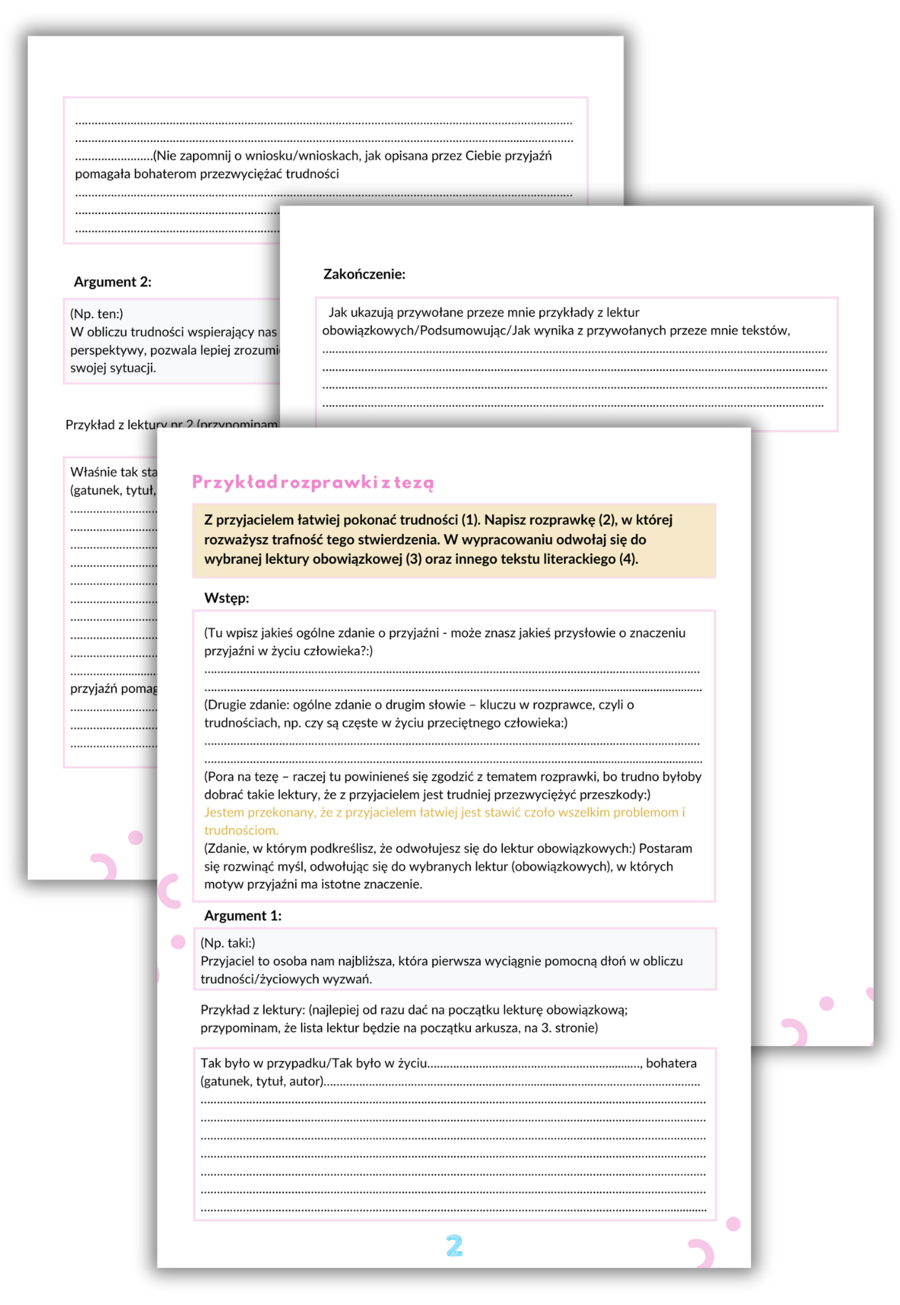 Gotowe do wykorzystania szablony rozprawek do samodzielnej pracy, by Twoje dziecko krok po kroku przećwiczyło każdy typ rozprawki.
