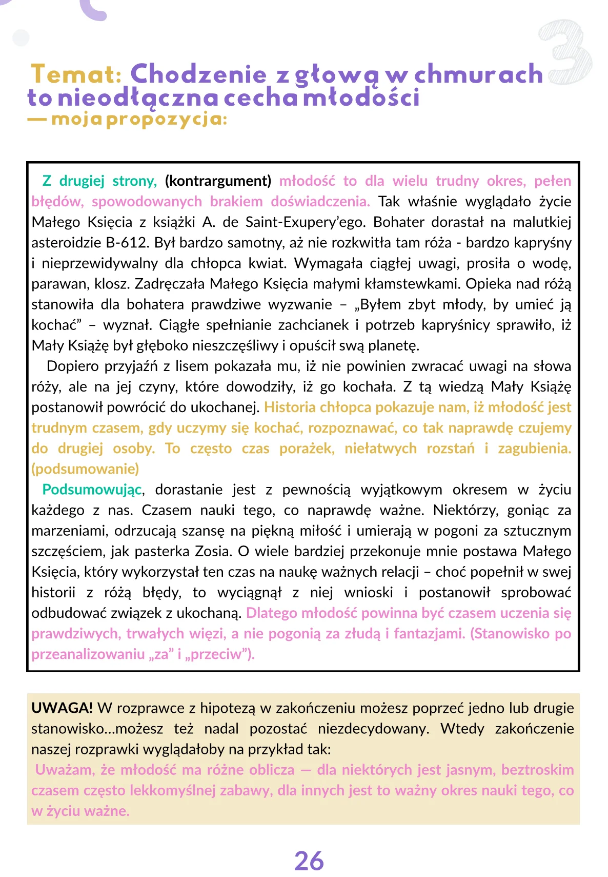 Jest to nieoceniona pomoc pokazująca praktyczną stronę tworzenia rozprawek i przemówień – zdanie po zdaniu!