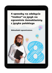 BONUS 1: ebook “4 sposoby na ”maksa” za język na egzaminie ósmoklasisty z języka polskiego” – moje sprawdzone sposoby na zdobycie maksymalnej ilości punktów za język w wypracowaniu